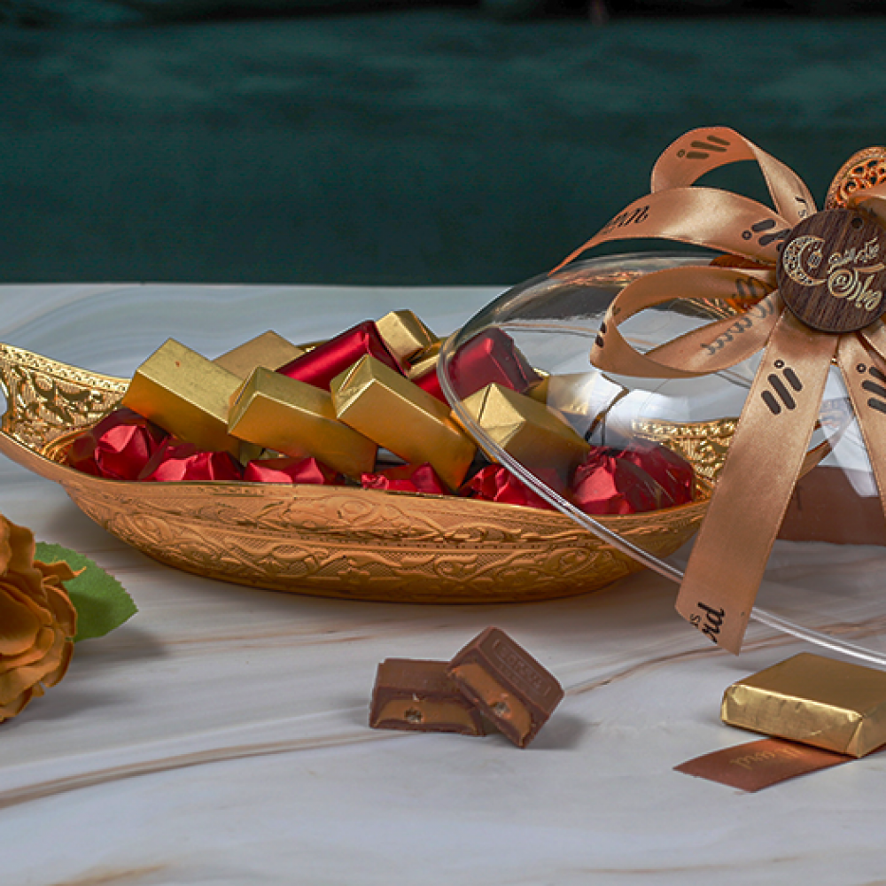 الصينية الذهبية الفاخرة بغطاء مميز تحتوي على أكثر من 300 جرام من الشوكولاتة الفاخرة 😍